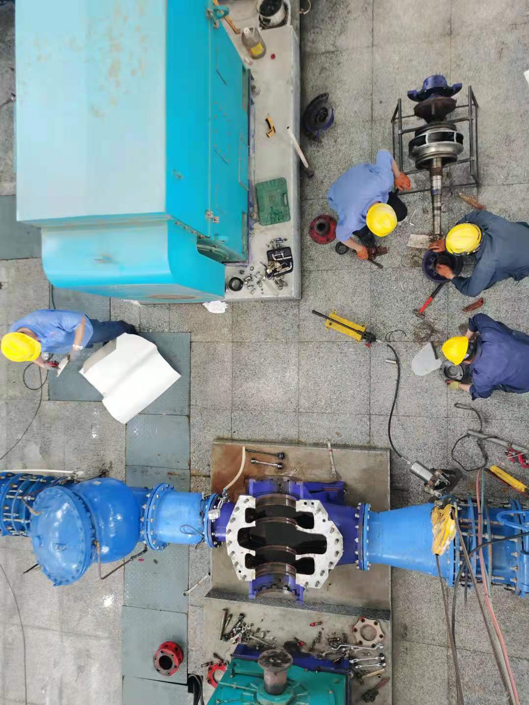 因三灣管道施工,從6月中旬開始庫區斷供,水廠全力抽取江水,水中雜物順流堵泵現象頻發。泵站值班人員隨時監測運行數據,及時拆卸泵殼清掏雜物以保證設備高效運行。其中愛河泵站5臺機組連續運行,堵泵情況最為嚴重。由于泵站屋頂低矮通風不暢,室內溫度超過五十攝氏度。為了維持取水效率,他們冒著中暑風險開泵搶修作業,充分展現了供水人愛崗敬業,服務社會的精神風貌。